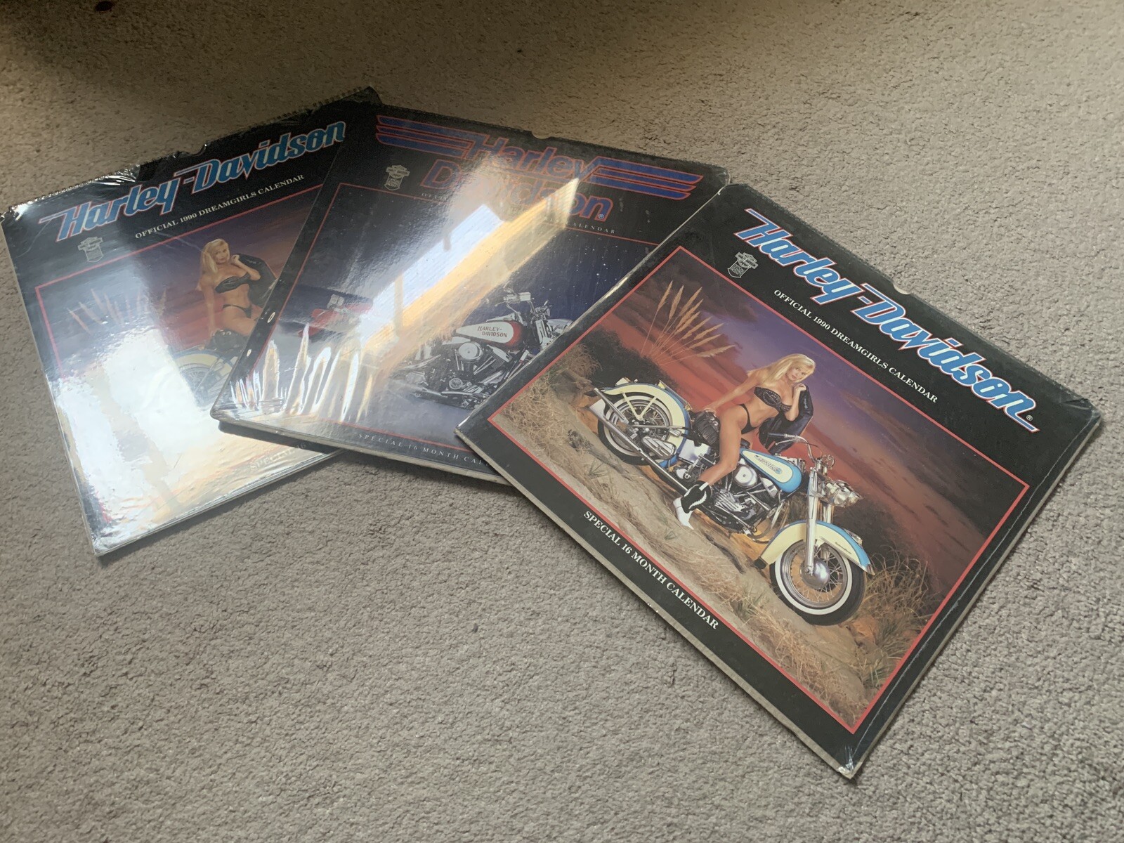 Vintage Harley Davidson Dreamgirls Calendar 16 Month Lot Of 3 NEW , Harley davidsondreamgirls7 calendars1988, 1989, 1990, 1991, 1992, 1993, 1995very nice collection of 7 vintage officially licensed harley davidson. The dreamgirls calendar features 13 of the most beautiful girls in the world paired with some of the finest american v twin bikes.